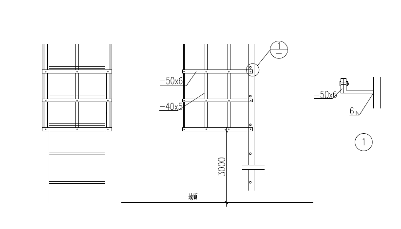5.7.2水平籠箍采用不小于50 mm×6 mm的扁鋼,立桿采用不小于40mm×5 mm的扁鋼。水平籠箍應固定到梯梁上,立桿應在水平籠箍內側并間距相等,與其牢固連接。